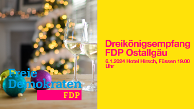 Wie jedes Jahr findet auch dieses Jahr der traditionelle Dreikönigsempfang der FDP-Ostallgäu für den FDP-Bezirk Schwaben am Abend des Dreikönigstags (6.1.2024) im Hotel Hirsch in Füssen statt.